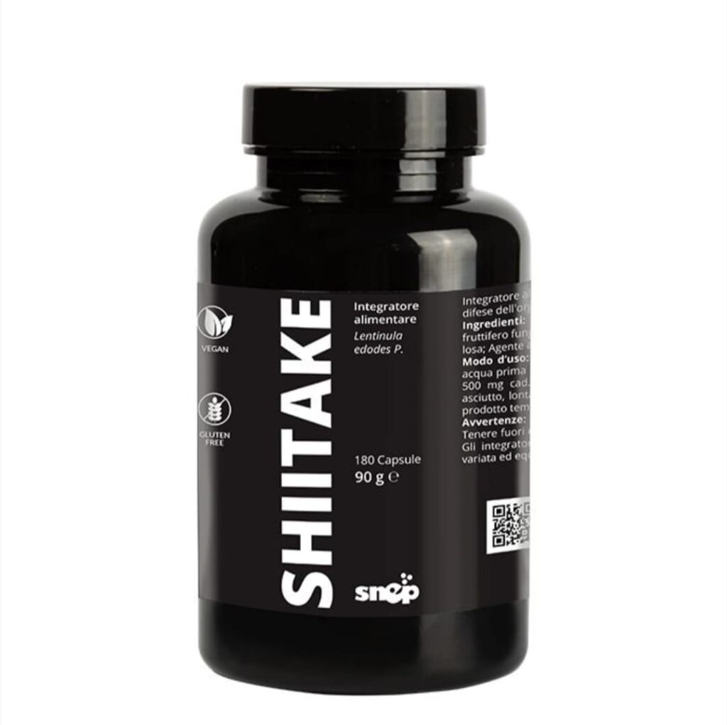 Ingredienti: Shiitake (Lentinula edodes (Berk.) Pegler) sporoforo Estratto secco tit. 8% in polisaccaridi; Idrossipropilmetilcellulosa; Agente antiagglomerante (Biossido di silicio).